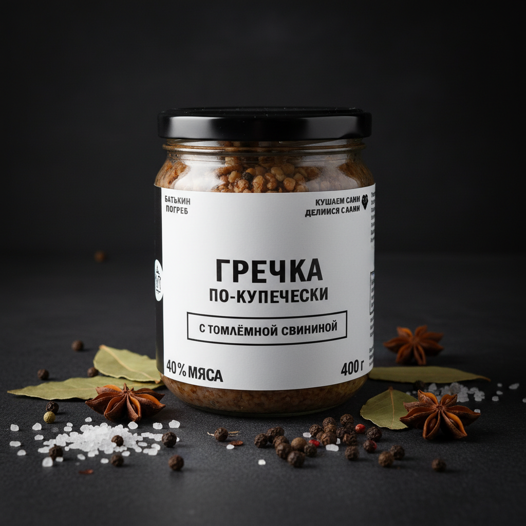 Состав Свинина, гречневая крупа, лук, морковь, соль, масло сливочное, вода.