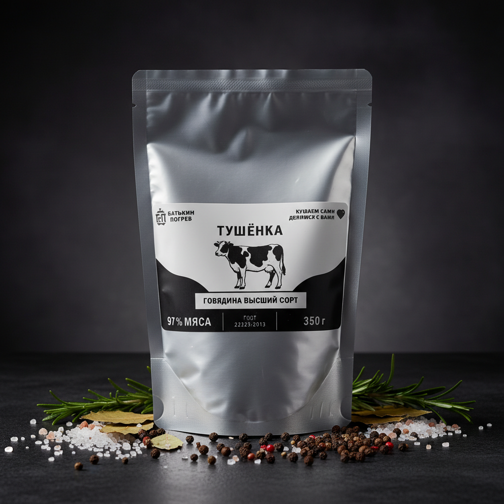 | Состав | Говядина, соль поваренная пищевая, перец чёрный горошек, лавровый лист |